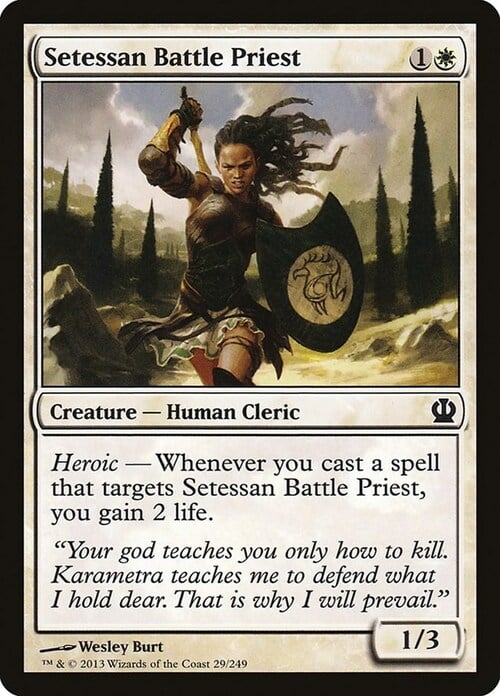 Eroismo — Ogniqualvolta lanci una magia che bersaglia la Sacerdotessa Guerriera di Setessa, guadagni 2 punti vita.
