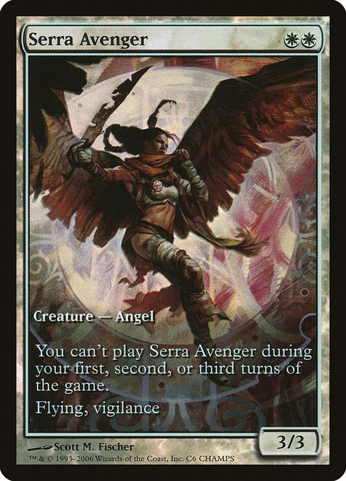 • 2012-07-01 If the game is restarted (by Karn Liberated), you can't cast Serra Avenger in your first, second, or third turn in the new game.