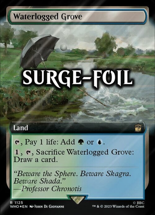{T}, Paga 1 punto vita: Aggiungi {G} o {U}. {1}, {T}, Sacrifica la Selva Allagata: Pesca una carta.