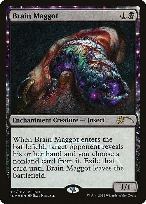 • 2014-04-26 If Brain Maggot leaves the battlefield before its enters-the-battlefield ability resolves, the opponent will reveal their hand, but no card will be exiled.