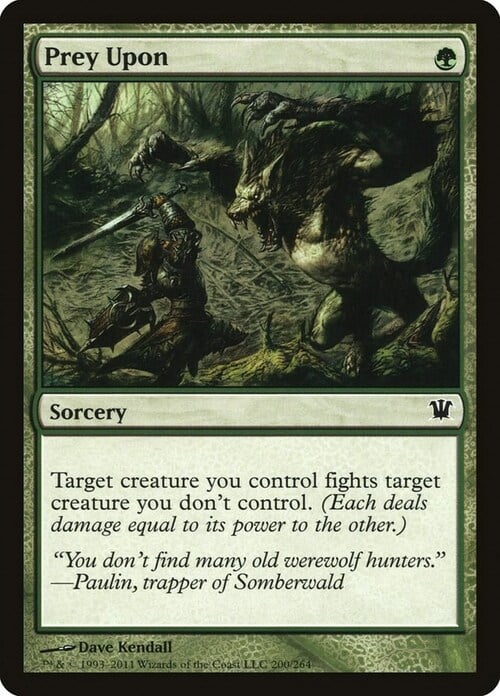 • 2018-12-07 If either target is an illegal target as Prey Upon resolves, no creature will deal or be dealt damage.
