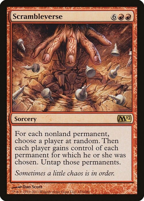 • 2011-09-22 Once Scrambleverse starts to resolve, no player may respond until it has finished resolving. For example, you can’t wait to see who will control a creature before deciding whether or not to activate one of its abilities.