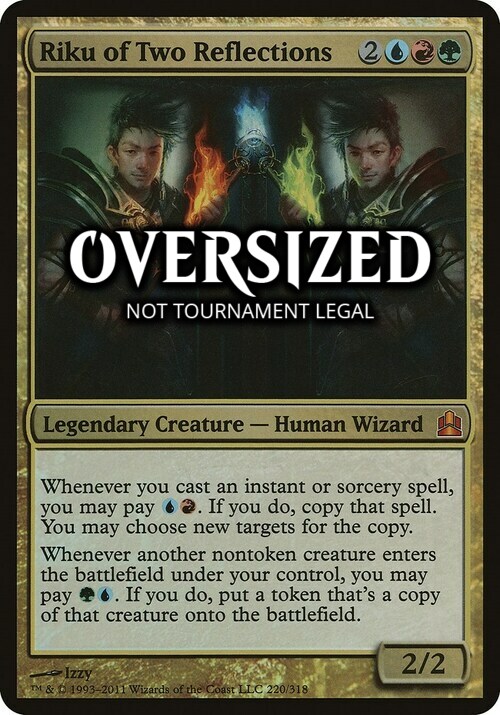 Siempre que lances un hechizo instantáneo o conjuro, puedes pagar {U}{R}. Si lo haces, copia ese hechizo. Puedes elegir nuevos objetivos para la copia. Siempre que otra criatura que no sea ficha entre al campo de batalla bajo tu control, puedes pagar {G}{U}. Si lo haces, pon en el campo de batalla una ficha que es una copia de esa criatura.